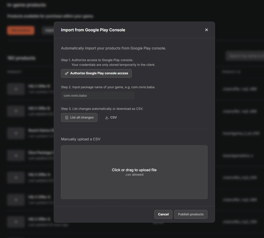 Importing products from Google Play
